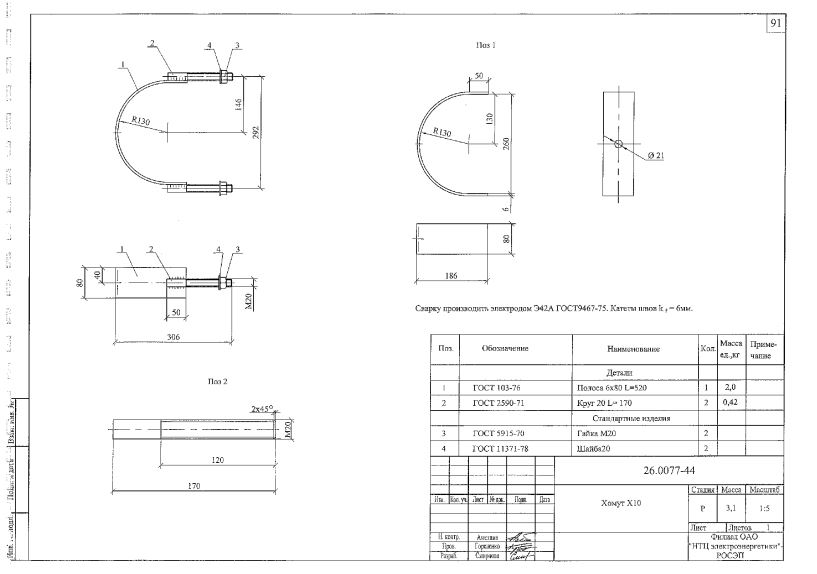 Хомут Х-10 выпускается в соответствии с типовым проектом 26.0077 (26.0077-44).