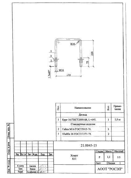 Хомут Х-11 выпускается в соответствии с типовым проектом 21.0045 (21.0045-15).