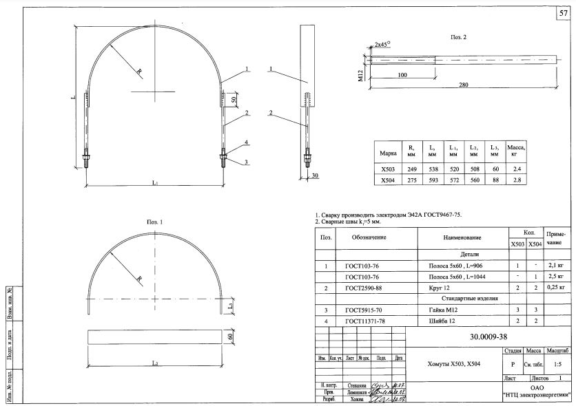 Хомут Х-503 выпускается в соответствии с типовым проектом 30.0009 (30.0009-38).