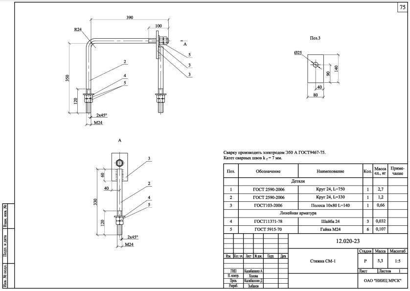 Стяжка СМ-1 выпускается в соответствии с типовым проектом 12.020 (12.020-23).